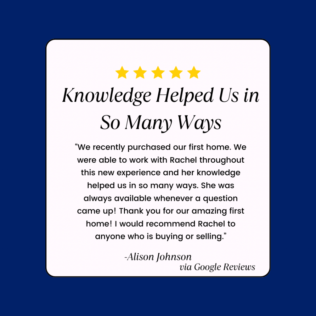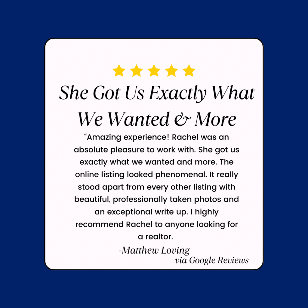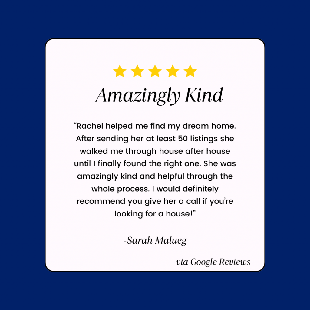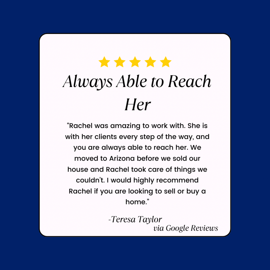 and prospects. Feel free to contact Rachel to discuss your real estate needs or to simply say hello. She is here to help and guide you through the exciting world of real estate.